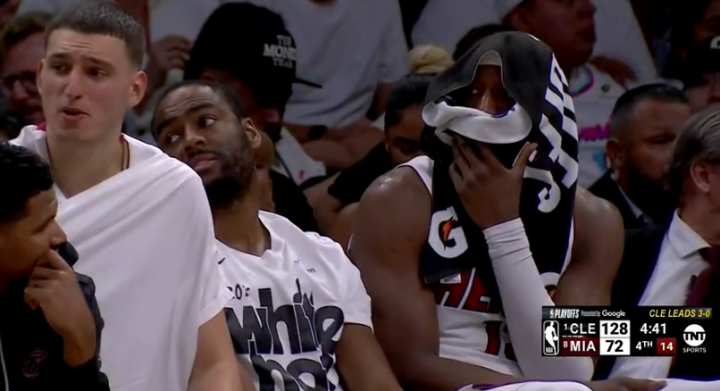 骑士替补席一片欢腾,热火替补席则是死气沉沉,希罗满脸绝望,阿德巴约用毛巾捂着脑袋;本场比赛,希罗正负值-44,为NBA球员在系列赛生死战正负值的历史最低值。